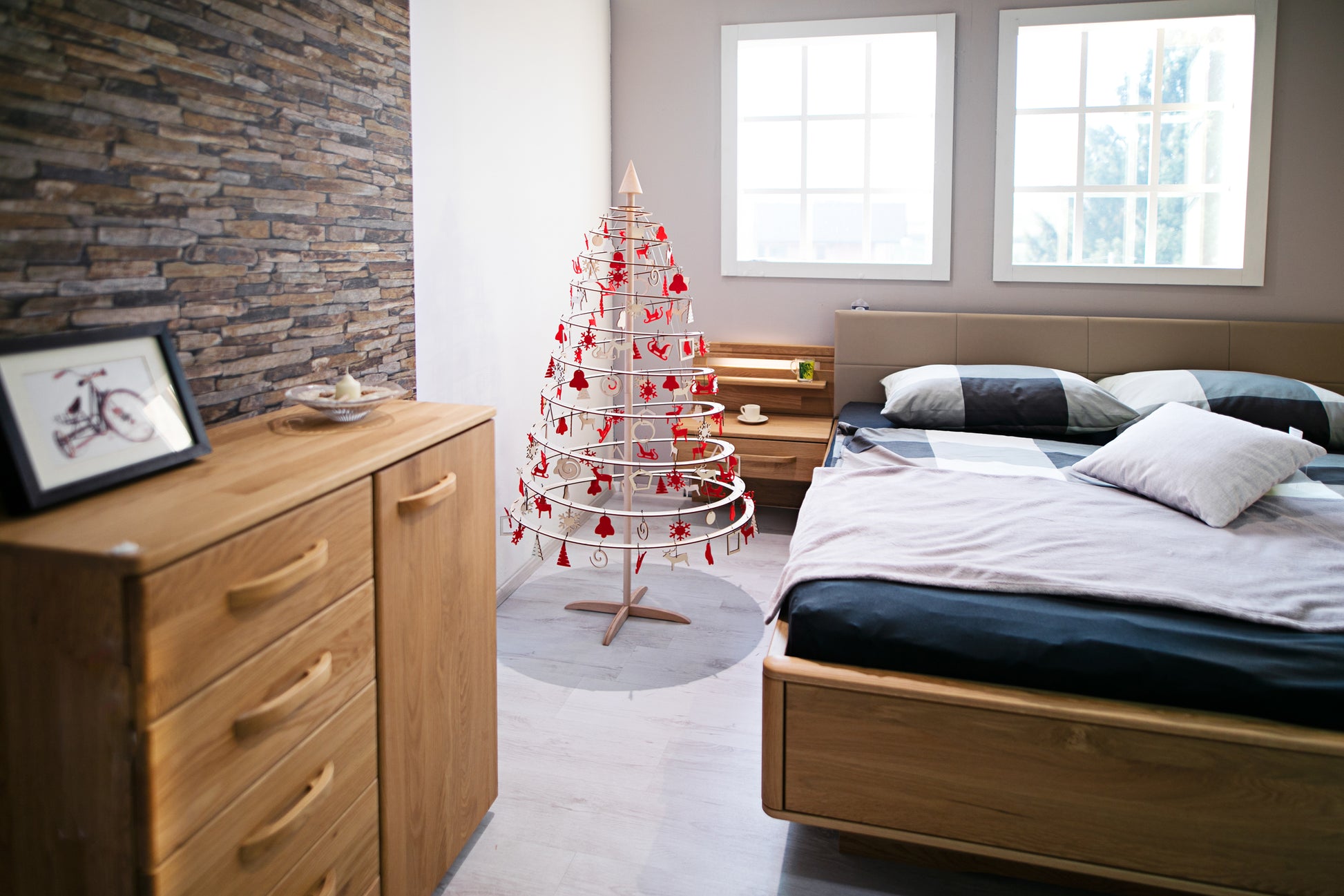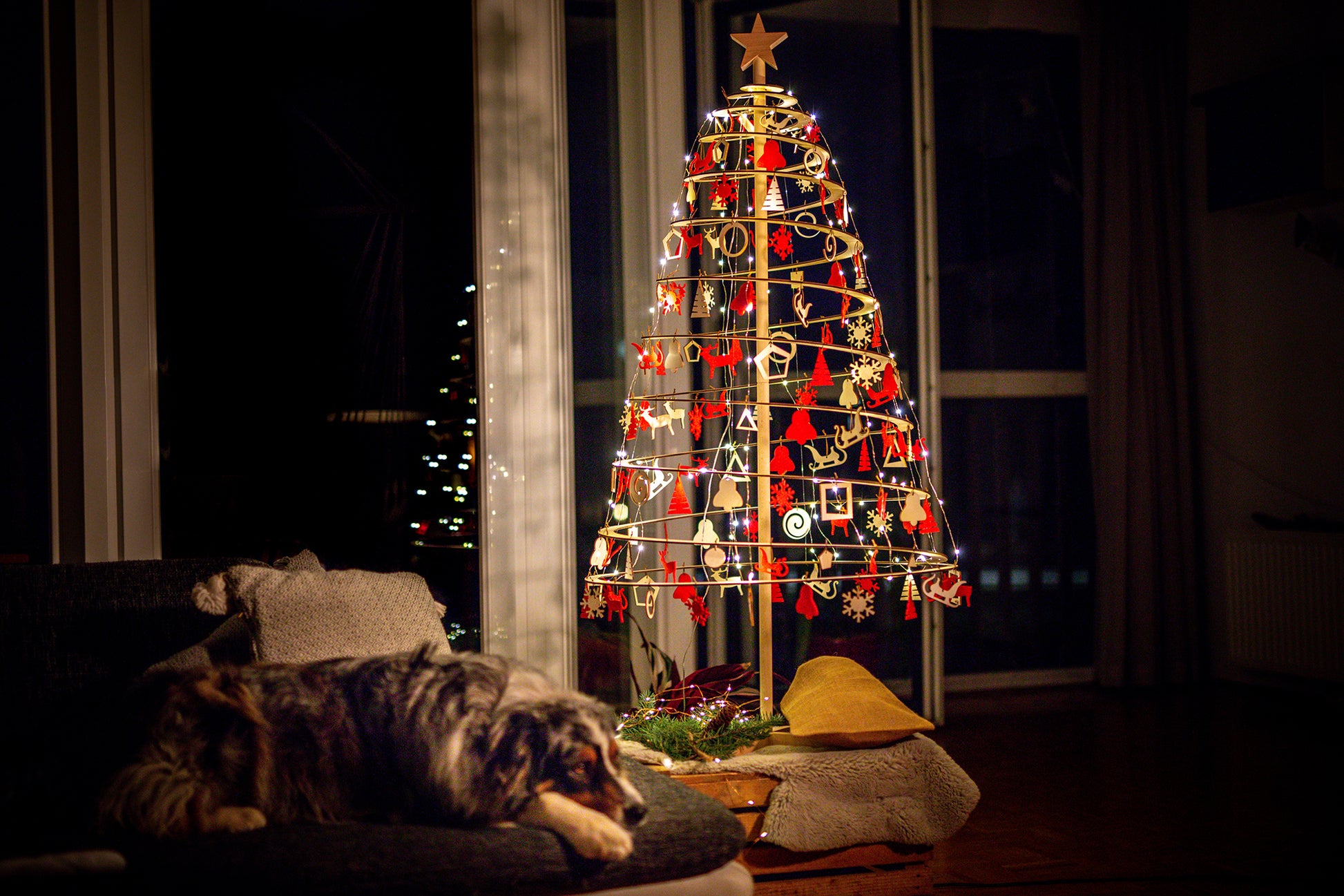 The eco-friendly Spira tree is made of laser-cut plywood and a wooden stand. The wooden tree can be assembled and disassembled very quickly. It also allows easy storage in a 5 cm high box.