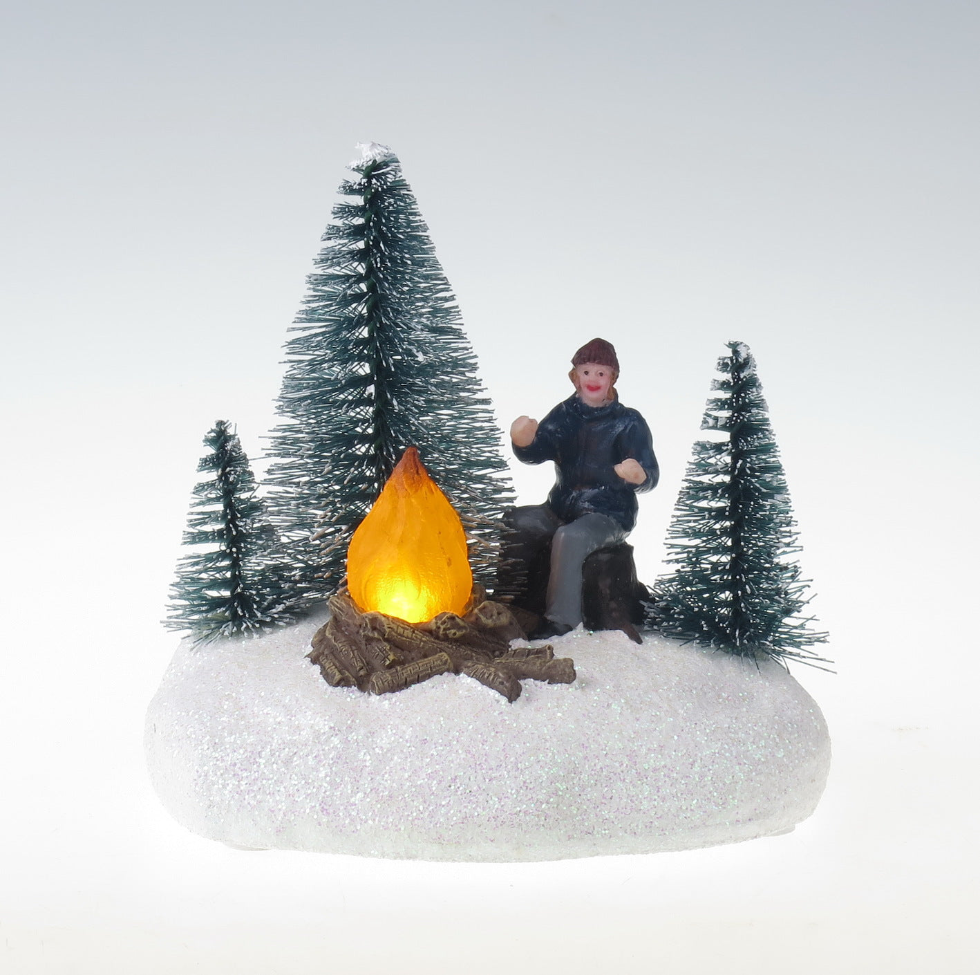 Homme avec feu de joie et arbres - Supplément Village de Noël